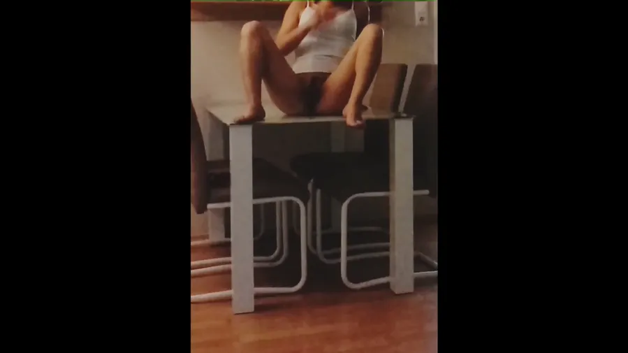 Heiße Selbstbefriedigung am Esstisch mit Vibrator